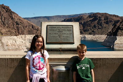 And here's a picture on top of the dam, we put the kids in different states, they thought it was pretty cool. Juliana was in Nevada and Ty was in Arizona.